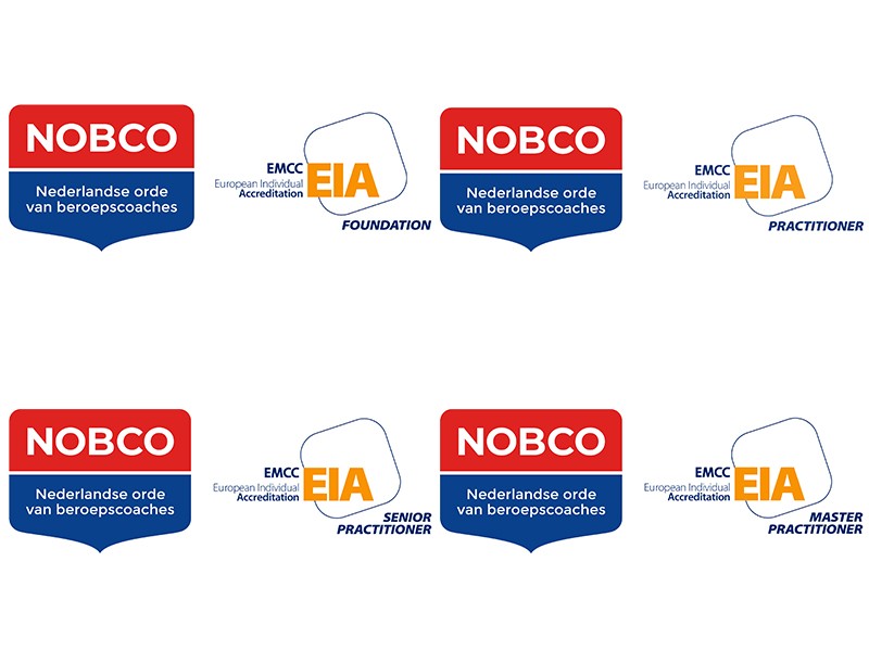 Een gecertificeerde coach herken je aan het NOBCO-logo in combinatie met het certificeringsniveau: Foundation, Practitioner, Senior Practitioner en Master Practitioner.
